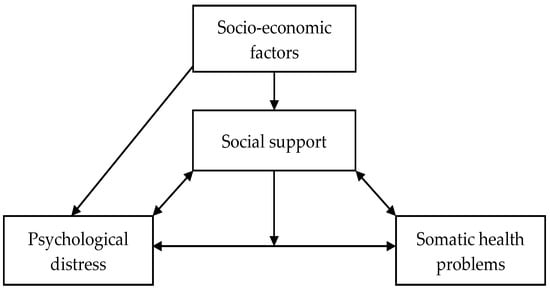 Conceptual model of the relationships between social support, psychological distress, somatic health problems and socio-economic factors [].