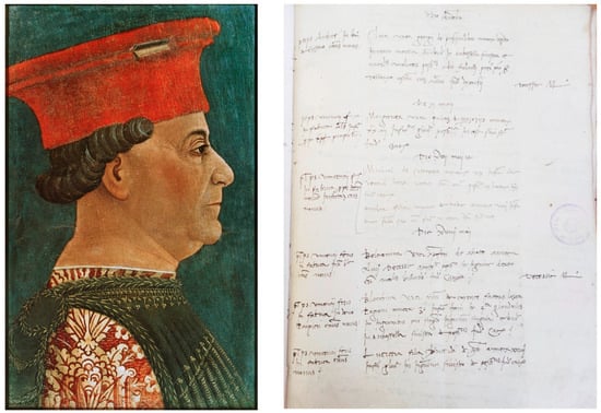 Figure 1 is represented Francesco Sforza portrait by Bonifacio Brembo in 1460 and a page of the