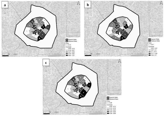 Contrade 3, 21, 16, 11, and 12 could probably be attributed to the high density of the population. To our knowledge, Milan was characterized by social heterogeneity at the