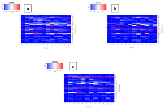 Figure 4 represents the heatmap for all subjects (a), children (b), and adults (c). The heatmap was made to assess the number of deaths of each