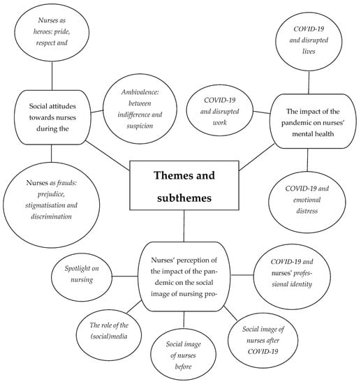 Three key themes emerged from the interviews: (1) social attitudes towards nurses during the pandemic, (2) nurses’ perception of the impact of the pandemic on the social image of the nursing profession and (3) the impact of the pandemic on nurses’ mental health (Figure 1).