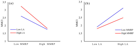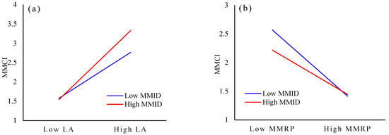 The interaction between MMID and LA and MMRP. (a) The effect of LA on MMID; (b) The effect of MMRP on MMID.