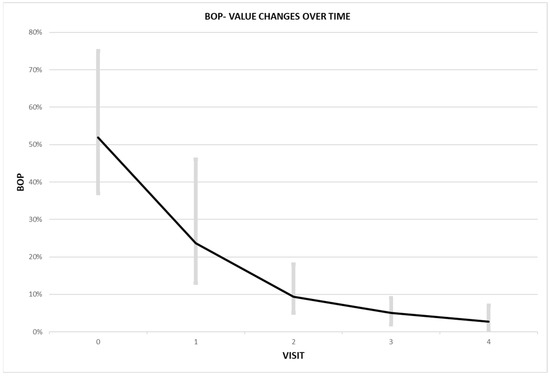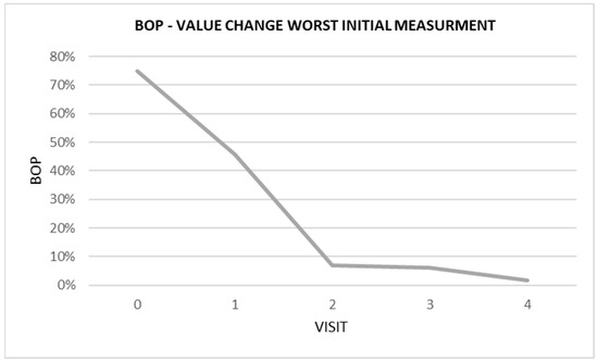 Graphical analysis of BOP changes over time in patient with the worst initial measurement.