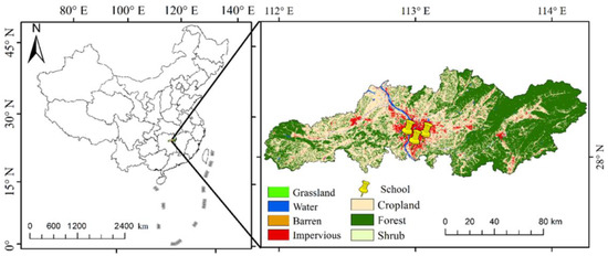 Changsha is the capital city of Hunan province, Central China, in the range of 111°53′ to 114°15′ N and 27°51′ to 28°41′ E (see Figure 2). It is a pilot area of the national ‘resource-saving and environment-friendly society’ construction and was awarded the National Forest City in 2006. In addition, it has a population of 10.24 million and land area of 11,819 km2, which was dominated by the subtropical evergreen broad-leaved forest, with 59.82% of forest coverage rate in 2021. Changsha is also a famous tourism destination, with lots of natural and cultural heritage sites in Central China.
