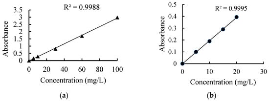 The quantitative standard curves of CB (a) and MCB (b) suspension using SDS as dispersant by measuring its absorbance at 800 nm.