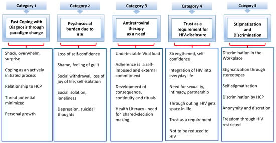 Beichler, H.; Kutalek, R.; Dorner, T.E. People Living with HIV and AIDS: Experiences towards Antiretroviral Therapy, Paradigm Changes, Coping, Stigma, and Discrimination—A Grounded Theory Study. Int. J. Environ. Res. Public Health 2023, 20, 3000. https://doi.org/10.3390/ijerph20043000