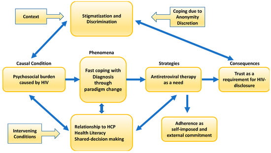 Chicago/Turabian StyleBeichler, Helmut, Ruth Kutalek, and Thomas E. Dorner. 2023. "People Living with HIV and AIDS: Experiences towards Antiretroviral Therapy, Paradigm Changes, Coping, Stigma, and Discrimination—A Grounded Theory Study" International Journal of Environmental Research and Public Health 20, no. 4: 3000. https://doi.org/10.3390/ijerph20043000