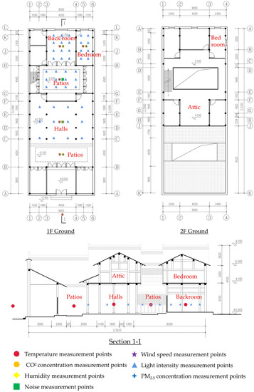 The layout of the “Yao’s House” and the location of the monitoring points.