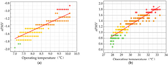 Operating temperature as a function of aPMV distribution. (a) Winter; (b) summer.