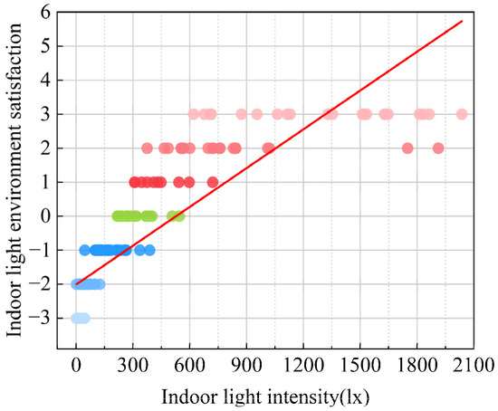 As far as the indoor light environment is concerned, traditional houses in southern Anhui could be better, and residents are less satisfied with the indoor light environment. The results show that because the rooms of traditional dwellings of South Anhui have small or no windows, the indoor lighting mainly depends on the patios, which lead to a small indoor lighting area and uneven distribution of light intensity. Therefore, in addition to auxiliary spaces, such as attics and stairwells, which can be designed with top lighting, some rooms with larger areas can also use top lighting, of which opening skylights and laying bright tiles are the most common techniques. In addition, residents can confirm a good window opening area by calculating the window-to-land ratio and adjusting accordingly to the lighting demand of functional rooms. The research found that the complex window pane system of traditional houses in southern Anhui blocked most of the natural light from entering [14]. Therefore, when optimizing the indoor light environment, residents can select the appropriate window pane structure by combining the overall style characteristics of the building and the practical use needs of the rooms, prioritizing the simple design with a relatively sizeable virtual reality [68]. According to the statistical analysis results, the comfort level of the indoor light environment of traditional houses in south Anhui has a linear relationship with light intensity, and the comfort range of indoor light intensity is 752.6–1252.5 lx. Therefore, residents can appropriately use a combination of general, local, and mixed lighting to improve indoor light intensity and illumination uniformity while reducing lighting energy consumption.