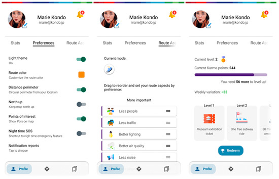 Route planners are widely used and focus on helping users find the best path between two points while considering their mobility preferences. Current options mostly focus on two dimensions, namely time and distance, which might not be enough to support other personal perceptions. Considering new aspects and different dimensions, such as air quality, noise levels, accessibility, or people density, all of which are sustained by recent advances in the area of sensorization and the IoT [33], it is possible to envision a tool to persuade the users’ shift to more sustainable means of transport.