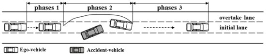 Phase 2: Control phase. The control phase is the main phase in which the driver takes over. The driver would adopt the corresponding lateral and longitudinal control behaviors based on his or her judgment of the surrounding environment. This study defined this phase as the time from when the driver pressed the take-over button until the center of the vehicle entered the initial lane after the vehicle completed the avoidance operation.