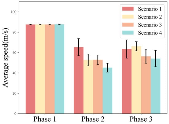 Figure 7 shows the average speed of the driver in each phase under different scenarios.