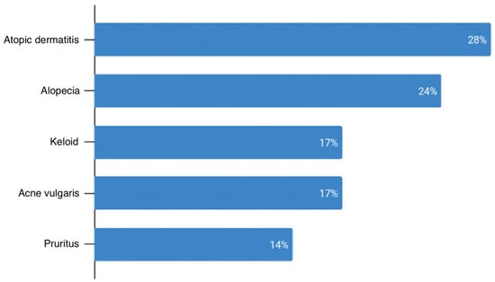 - Davis, S.A.; Narahari, S.; Feldman, S.R.; Huang, W.; Pichardo-Geisinger, R.O.; McMichael, A.J. Top dermatologic conditions in patients of color: An analysis of nationally representative data. J. Drugs Dermatol. 2012, 11, 466–473. [Google Scholar] [PubMed]