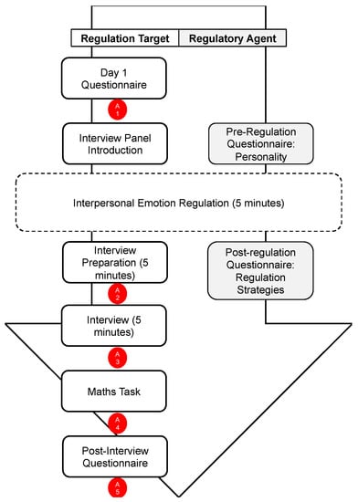 During implementation, effectiveness can be determined based on whether the regulator’s desired outcomes are induced. This combines inducing the desired effects in relation to the target’s emotions (the proximate goal of interpersonal emotion regulation) and inducing the associated desired consequences in relation to the higher-order goals of regulation [35,36]. The current paradigm involved an explicit instruction to regulate a target’s feelings to help them to perform optimally in an interview; thus, implementation effectiveness takes the dual form of managing the target’s anxiety (which would ordinarily be expected to be experienced prior to and during an interview, and which could undermine performance, e.g., [37]), and enhancing the target’s interview performance.