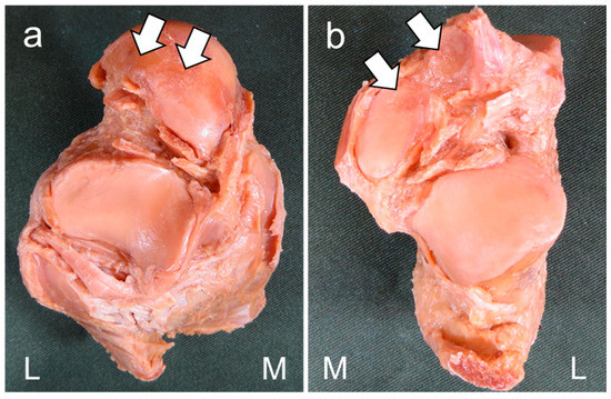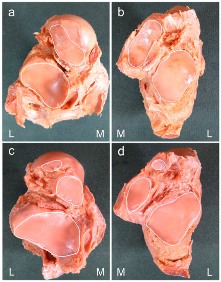 - Hirose, K.; Murakami, G.; Kura, H.; Tokita, F.; Ishii, S. Cartilage degeneration in talocrural and talocalcaneal joints from Japanese cadaveric donors. J. Orthop. Sci. 1999, 4, 273–285. [Google Scholar] [CrossRef] [PubMed]