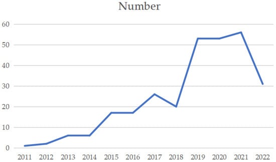 After WOS database collection and post-processing, the annual number of papers on BIM technology and building energy consumption was collected. Figure 3 describes the research on BIM technology application in building energy consumption from 2011 to now. It can be seen that starting from 2011, the number of publications continuously increases, which shows that the academic community is becoming more and more interested in using BIM technology to reduce construction energy usage.