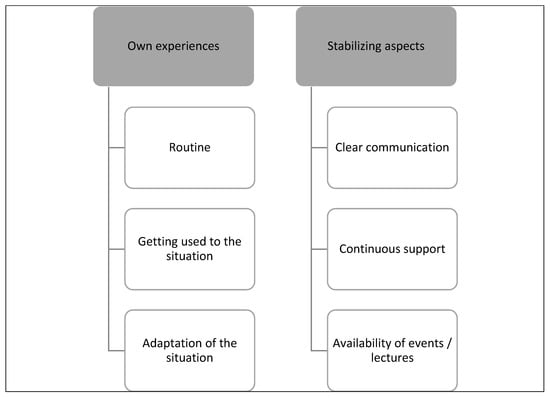 This topic describes what aspects were helpful in creating feelings of certainty in students and teaching staff during the COVID-19 pandemic and the changeover of teaching conditions. For this topic, two main categories were created and divided into different subcategories, as shown in Figure 1 below.
