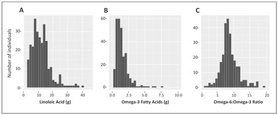 - Heinzer, K.; Lang, S.; Farowski, F.; Wisplinghoff, H.; Vehreschild, M.; Martin, A.; Nowag, A.; Kretzschmar, A.; Scholz, C.J.; Roderburg, C.; et al. Dietary omega-6/omega-3 ratio is not associated with gut microbiota composition and disease severity in patients with nonalcoholic fatty liver disease. Nutr. Res. 2022, 107, 12–25. [Google Scholar] [CrossRef] [PubMed]