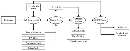 The extensive literature review showed that the main methods used in the quantitative research on outdoor space quality in residential areas include regression analysis, linear correlation analysis, analytic hierarchy process, etc. These methods only allow a single measurement index belonging to a single variable and a single calculation path, which is not suitable for research with multiple and complex variables. The complex and diverse dimensions of the value composition of outdoor space belonging to latent variables are difficult to measure directly. However, the value dimension (i.e., each value item under each dimension) can be indirectly measured through observable indicators. Traditional methods cannot deal with these latent variables effectively. By contrast, structural equation modeling (SEM) can deal with both latent and explicit variables. In addition, the structural equation model can select a more suitable model according to the overall fitting degree of different models to the same sample data.