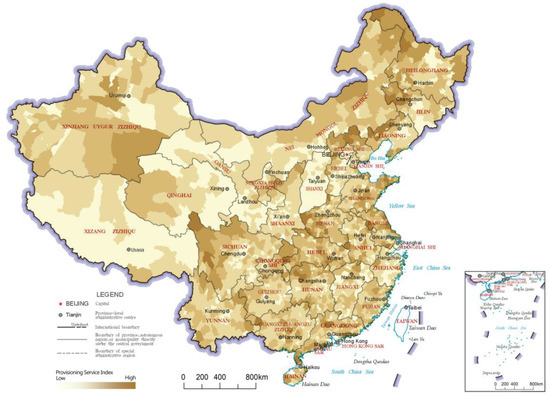 Distribution map of provisioning service indices of the county-level regions in China.
