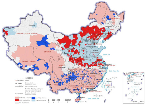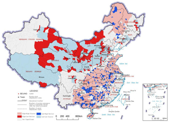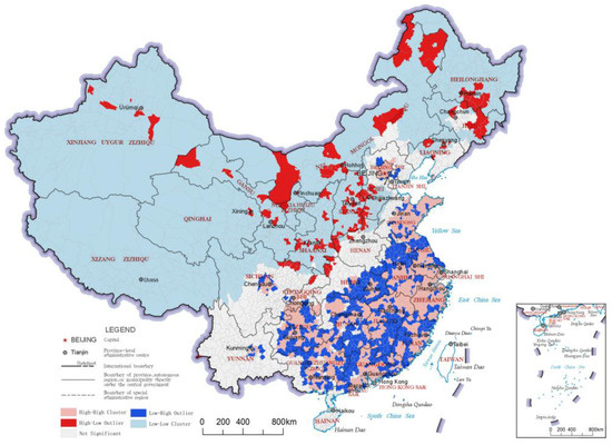 LISA cluster map of cultural service indices of the county-level regions in China.