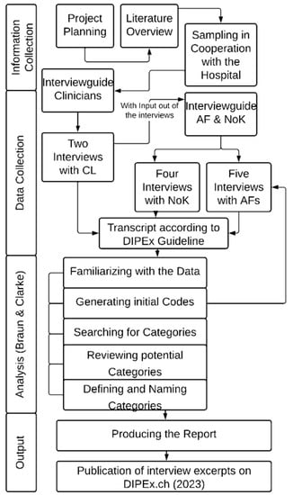 This pilot study is embedded into the framework of DIPEx. DIPEx is an international collaboration of researchers, clinicians, and those affected that aims to gather and make broadly accessible individuals’ experiences related to health, care, and illness, allowing for comparisons both nationally and internationally [,]. The Health Experience Research Group (HERG) at the Nuffield Department of Primary Care, University of Oxford, developed the methodological basis []. Currently, 14 countries participate in the international DIPEx network with national platforms []. The results of this pilot study will be uploaded to the Swiss DIPEx website [] as planned in 2023.