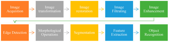 By dividing an image into segments, it is possible to distinguish these segments from the background [49]. Figure 4 illustrates basic steps for segmenting images into different segments and helps to obtain quality image for further work. There are numerous techniques are followed for segmenting images, some of are given below.