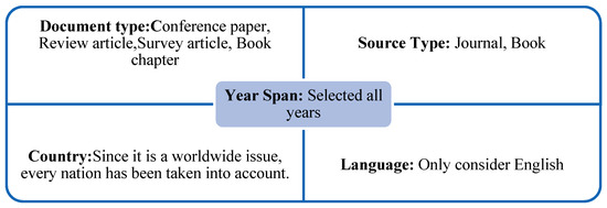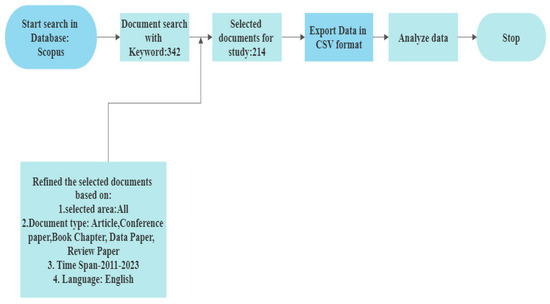 One of the biggest collections of scientific publications, including journal articles, conference materials, and book chapters, is Scopus. Peer-reviewed articles come from a variety of academic disciplines, including science, medicine, the arts, and engineering, and are evaluated by subject-matter experts. The entire world is covered by it. Scopus is regarded as a trustworthy and dependable source whenever research is required as a result. Over 3000 academic, governmental, and commercial entities use Scopus, which serves as the main data source for the Elsevier Research Intelligence portfolio [54]. By connecting the significant keywords listed in Section 2.2 to the Scopus database, the analysis takes the database into consideration.