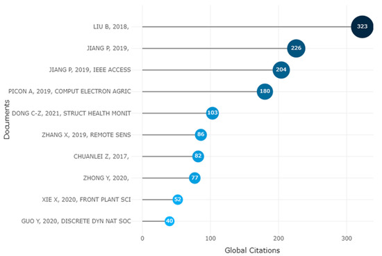 In view of the aforementioned issue, the researchers feel forced to execute a bibliometric study and comprehend the research allied to the detection of plant diseases with artificial intelligence. It is customary to list the sources at the end of a book, article, or report to demonstrate that the data from those sources were used to construct that particular book, article, or report [53]. The words “biblio” and “metrics,” which stand for assessment and the literature, respectively, make up the term “bibliometrics.” It is employed to assess how well institutions’ and organisations’ research is performing. It is a frequently employed technique for precisely locating research data depending on the quantity of articles, the quantity of citations, the locations of the critiques, and several other features [51]. This study also assists in identifying areas for future research and possible directions for the authors’ contributions to the subject.