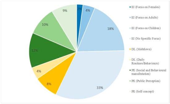 - Specific focus on children (18.4%): Videos discussing social and behavioural manifestations a child might exhibit, for example, self-stimulatory behaviours, such as hand flapping, grunting, or excessive blinking. Videos with this theme also included animations to help children learn about ASD.