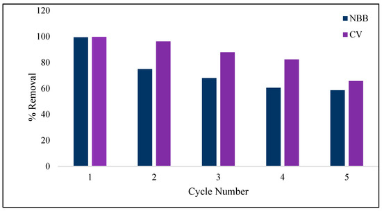 Reusability of ACOC for adsorption of NBB and CV.