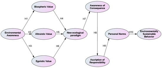 5.1.2. The Influence of VBN Factors on University Students’ Environmentally Sustainable Behavior