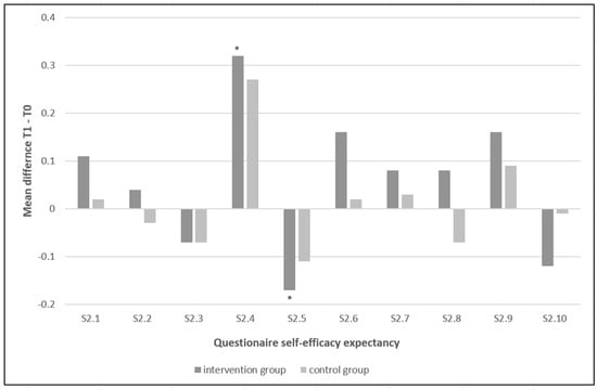 Questionnaire self-efficacy expectancy. (* significant at p < 0.05).