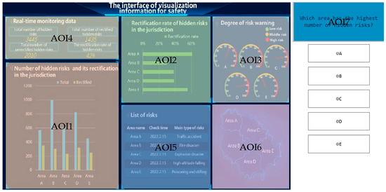 With the development of the Internet, big data, cloud computing, and other technologies and urbanization, information visualization has played an increasingly crucial role in the field of safety and emergency management. Visualization information for safety (VIS) is the transformation of information and knowledge related to safety risks into a visual representation, using the human ability to quickly identify views to improve cognitive efficiency and make high-quality decisions [1]. In recent years, the application of various safety-risk-monitoring technologies has gradually become popular. When VIS is presented on the platform interface, people can perceive, understand, and predict the safety-risk status of the target object promptly. For example, during the outbreak of COVID-19, a large amount of VIS emerged to help the public quickly understand the real-time development of the epidemic and predict the future evolutionary trend by promptly conveying the quantity of information and spatial distribution of the outbreak to the public [2]. However, with the increasing complexity and diversification of VIS, VIS has brought abundant information and increased people’s cognitive load. Thus, minimizing the cognitive load of the interface design is one aspect of improving its usability [3,4,5]. Weiser argued that information technology is often the enemy of calm, with countless pieces of information trying to attract attention, and, owing to the limitation of an individual’s attention resources, the usability of interface design can be achieved by minimizing user attention, improving the user’s situation awareness (SA), and minimizing their input [6]. Blackwell’s proposed framework of cognitive dimensions of notations (CDs) predicts the usability of interface design in terms of the structural properties of a notation, its properties, and the resources of an environment, providing an account of information construction that respects the value of user activity [7,8]. A good visualization of safety information can help people better obtain, store, and process information so that they can make effective decisions. Within the general context of visualization for safety information, as the actual safety status of the target object is invisible, the relevant context needs to be constructed and maintained in the brain, and the way information is constructed and represented affects people’s construction and maintenance of SA [9,10,11,12].
