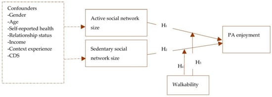 Asiamah, N.; Agyemang, S.M.; Yarfi, C.; Jnr, R.A.-M.; Muhonja, F.; Khan, H.T.A.; Kouveliotis, K.; Sghaier, S. Associations of Social Networks with Physical Activity Enjoyment among Older Adults: Walkability as a Modifier through a STROBE-Compliant Analysis. Int. J. Environ. Res. Public Health 2023, 20, 3341. https://doi.org/10.3390/ijerph20043341