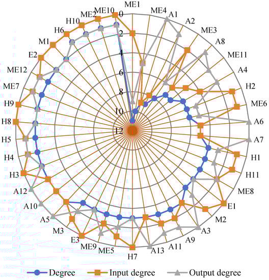 In contrast, the degree of improper operation and maintenance of equipment and facilities (ME1), signal failure (ME4), operation delay accidents (A1) and fire accidents (A2) are significantly higher, at 11, 10, 9 and 9 respectively. The input degree of operation delay accidents (A1) and fire accidents (A2) are significantly larger than that of other vertexes. The output degree of improper operation and maintenance of equipment and facilities (ME1) is significantly larger than that of other vertexes. The higher the degree of vertexes, the more likely the risks represented by these vertexes will occur together with other risks. Therefore, strengthening the control of these vertexes can better reduce safety risks.