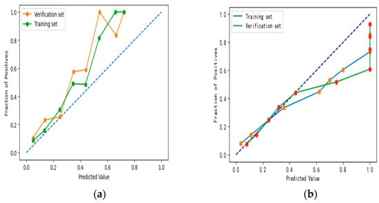 In this study on the prediction of HUA onset in steelworkers, the XG Boost model achieved better results and was more suitable for the prediction of HUA onset risk in steelworkers. XG Boost is a classification supervision model based on multiple trees, which essentially took the sum of the predicted values of each tree as the final predicted value. XG Boost had excellent computational efficiency, predictive generalization ability, and overfitting control, making it a long-term dominant data science competition solution. Rajdeep used six different machine learning algorithms to predict obesity risk and achieved a classification accuracy of up to 97.87% for the XG Boost model []. Savitesh predicted the risk of pre-diabetes in children and adolescents and found that XG Boost was the best classification model with a 10-fold cross-validation score of up to 90.13%. Savitesh integrated the XG Boost algorithm into a screening tool for completing the automatic prediction of pre-diabetes []. Shoukun performed miner fatigue identification based on physiological indicators from ECG and EMG and found that the XG Boost model had the best accuracy and robustness with a recognition accuracy of 89.47% and AUC of 0.90, the recognition of miner fatigue based on the XG Boost model is feasible []. The unique ability of logistic regression to correct different prevalence rates made it widely used in medical research, but it showed the poor ability of correct classification and low sensitivity in this study. Although the classification ability of the CNN model was relatively strong, it performed poorly in calibration, possibly because it was better at dealing with image problems.