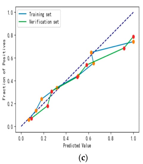 Calibration curves of three models: (a) Logistic; (b) CNN; (c) XG Boost.