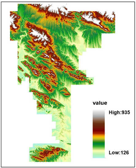 PC1 contributed 40.9% of the fluctuation and included a strong positive stacking of Mn, Co, Ni and Cr (Figure 5), illustrating that those heavy metals appear to come from a comparable origin. The soil profile investigation for this seems clear. The CV values of Cr, Co, Ni, Mn and Zn contents were 21%, 30%, 23%, 23% and 22%, respectively, setting it within the low spatial variability. Most Cr aggregation in soils was close to the normal background levels that were controlled by the natural factors [48]. Thus, PC1 could be attributed to natural sources. The study area is located in the eastern section of the Qinling folded orogenic belt, with complex geology and wide stratigraphic distribution, mainly for the Paleozoic Qinling rock group. The rock types include gabbro, monazite, amphibolite, orthogabbro, granite porphyry and alkalic feldspar granite. The lithological effects are also attributed to natural sources. The lithological effects are also attributed to natural sources. Since the average contents of Co, Cr and Ni in the surface soil are close to the regional background values and they have similar spatial distribution characteristics with the DEM map (Figure 6), the geochemical characteristics of Co, Cr, Ni and Mn in the surface soil mainly depend on the soil parent material and natural soil formation process.