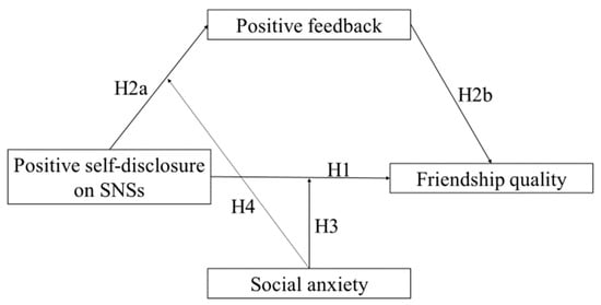 Liu, L.; Zhang, T.; Han, L. Positive Self-Disclosure on Social Network Sites and Adolescents’ Friendship Quality: The Mediating Role of Positive Feedback and the Moderating Role of Social Anxiety. Int. J. Environ. Res. Public Health 2023, 20, 3444. https://doi.org/10.3390/ijerph20043444