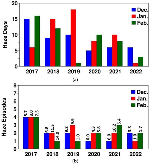 3.1. Temporal Characteristics of Identified Haze Days and Haze Episodes