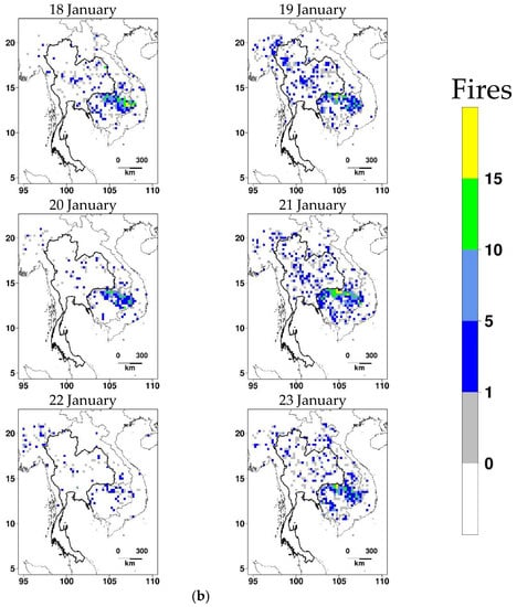 - Ashfold, N.J.; Latif, M.T.; Samah, A.A.; Mead, M.I.; Harris, N.R.P. Influence of northeast monsoon cold surges on air quality in Southeast Asia. Atmos. Environ. 2017, 166, 498–509. [Google Scholar] [CrossRef]