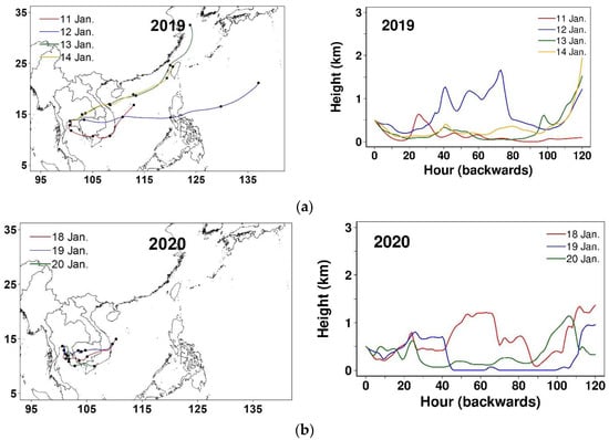 - Stein, A.F.; Draxler, R.R.; Rolph, G.D.; Stunder, B.J.B.; Cohen, M.D.; Ngan, F. NOAA’s HYSPLIT atmospheric transport and dispersion modeling system. Bull. Am. Meteorol. Soc. 2015, 96, 2059–2077. [Google Scholar] [CrossRef]