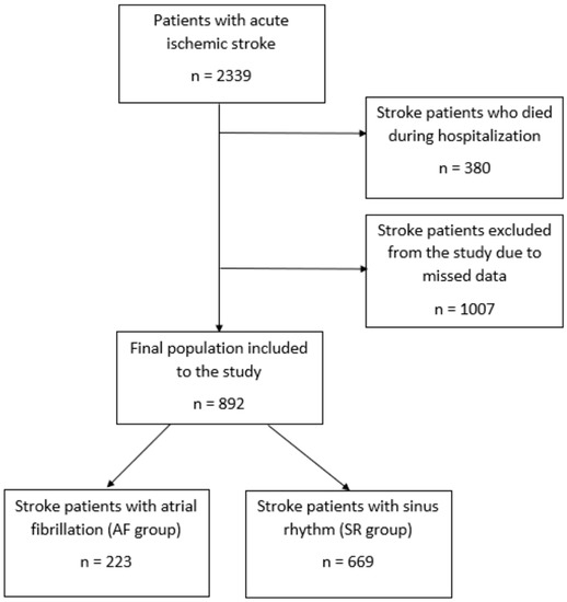 - Lin, H.J.; Wolf, P.A.; Kelly-Hayes, M.; Beiser, A.S.; Kase, C.S.; Benjamin, E.J.; D’Agostino, R.B. Stroke severity in atrial fibrillation. The Framingham Study. Stroke 1996, 27, 1760–1764. [Google Scholar] [CrossRef] [PubMed]