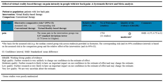 A Systematic Review and Meta-Analysis of the Effectiveness of Virtual Reality-Based Rehabilitation Therapy on Reducing the Degree of Pain Experienced by Individuals with Low Back Pain
