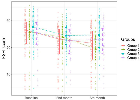 FSFI scores of the groups during the study intervals.