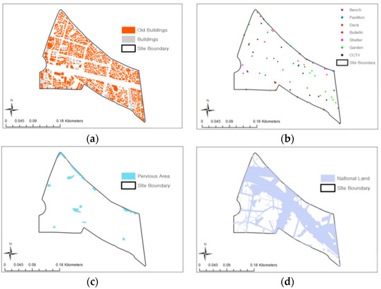 To derive the index values of urban regeneration areas, data values for three target sites were first constructed according to the measurement method shown in Table 2 (see Figure 4).