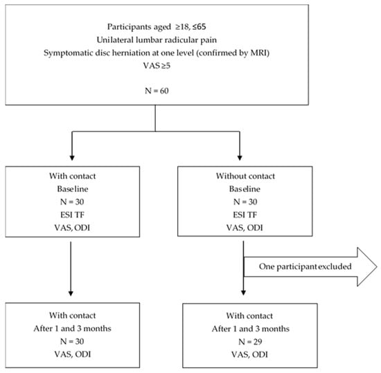 Budrovac, D.; Radoš, I.; Hnatešen, D.; Haršanji-Drenjančević, I.; Tot, O.K.; Katić, F.; Lukić, I.; Škiljić, S.; Nešković, N.; Dimitrijević, I. Effectiveness of Epidural Steroid Injection Depending on Discoradicular Contact: A Prospective Randomized Trial. Int. J. Environ. Res. Public Health 2023, 20, 3672. https://doi.org/10.3390/ijerph20043672