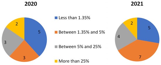 4.2. General Results for the 2020 and 2021 Campaigns